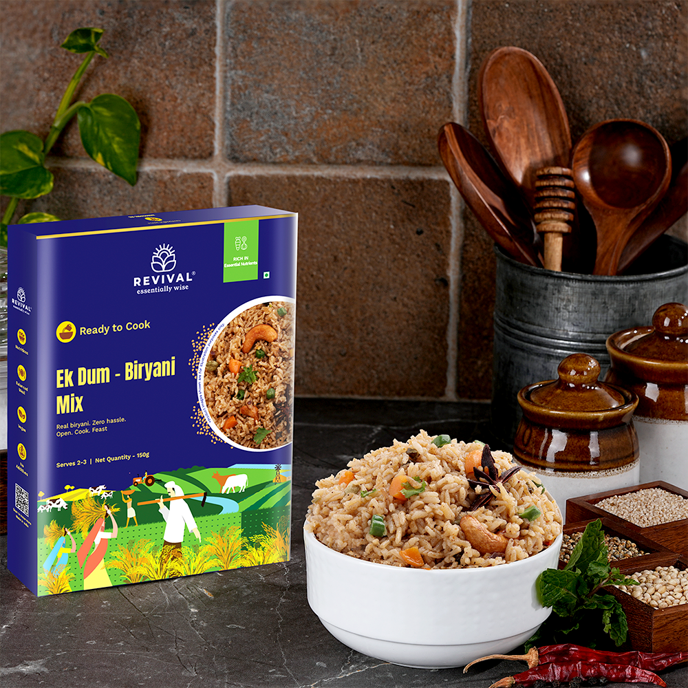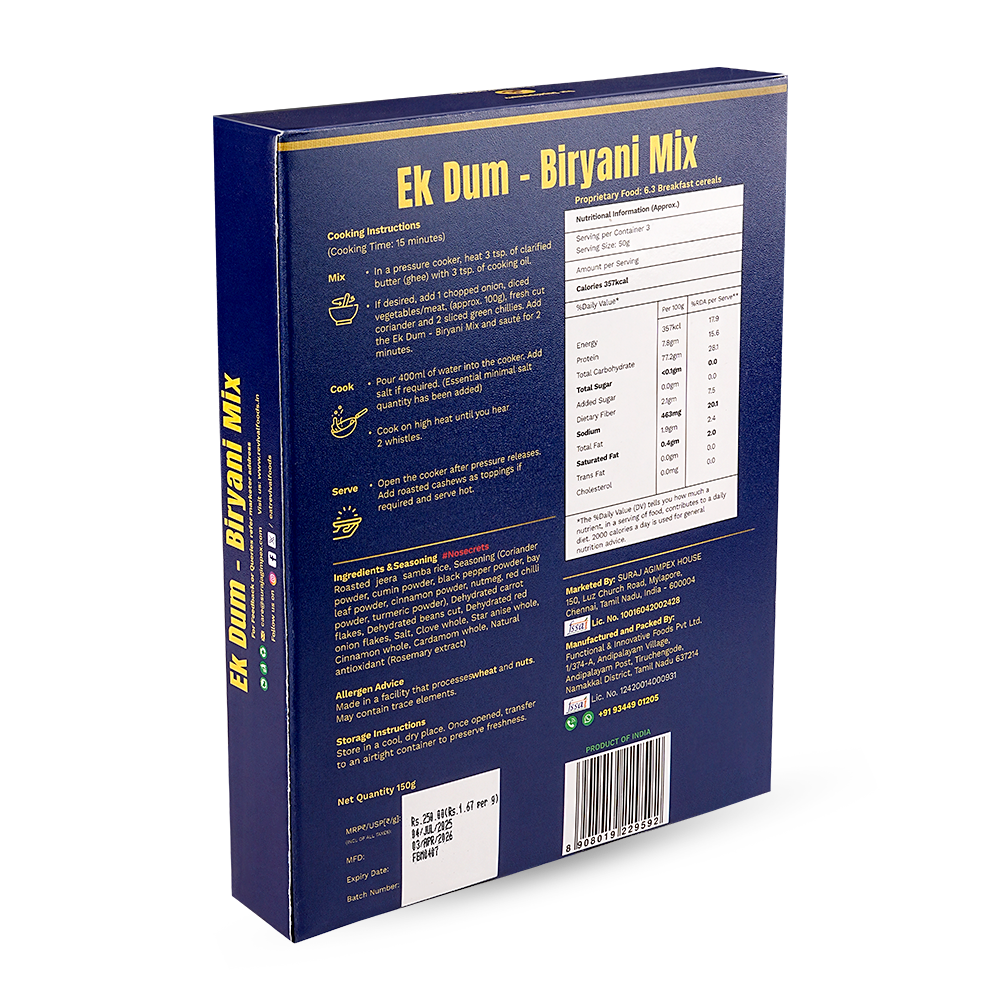 Ek Dum Biryani Mix | 150 g (Serves 2–3) | Aromatic & Easily Digestible | Rich in Antioxidants | Quick, Comforting & Easy to Cook.