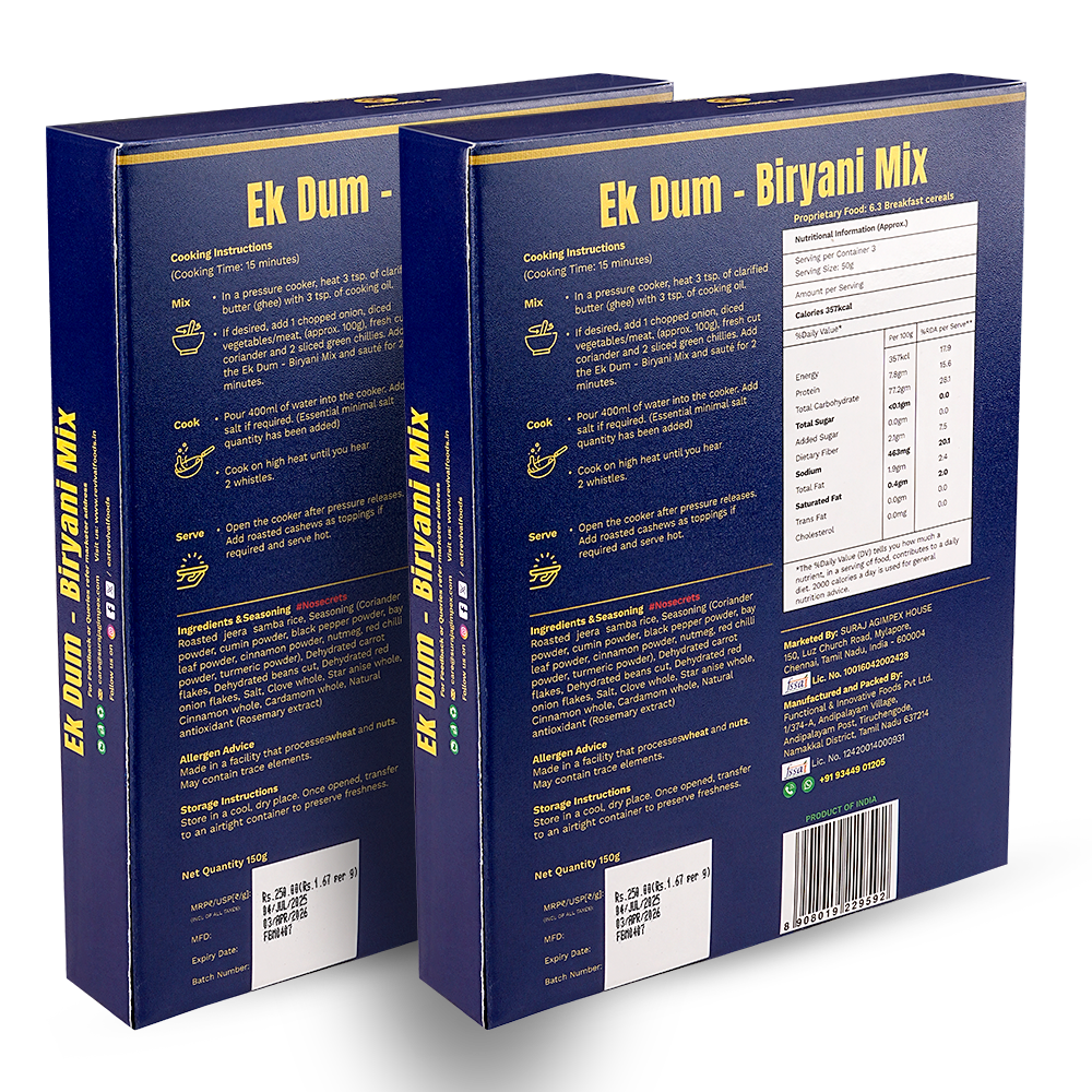 Ek Dum Biryani Mix Pack of 2 | 2 × 150 gms | Serves 3-4 each | Aromatic & Easily Digestible | Rich in Antioxidants | Easy to Cook .