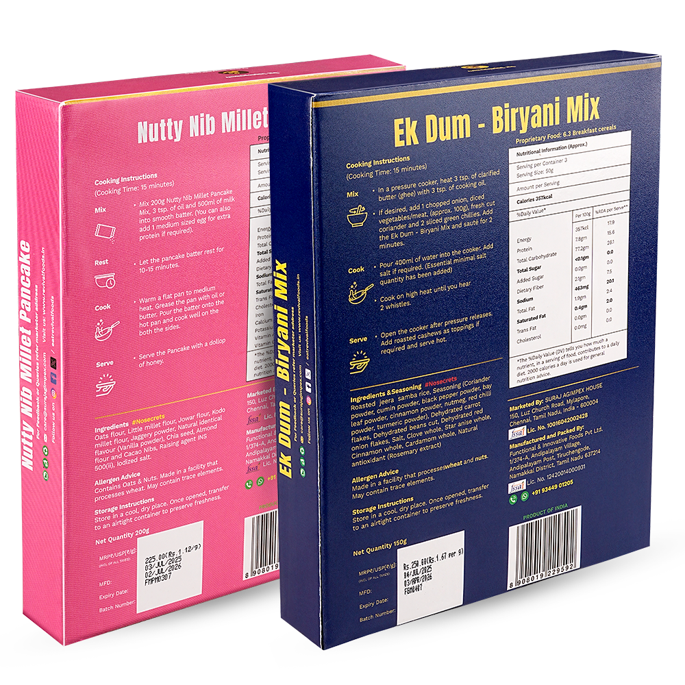 Experience the royal taste of traditional South Indian biryani made with premium Ek Dum Jeerakasamba rice – known for its fine texture, delicate aroma, and easy digestion. Our Jeerakasamba Biryani is a perfect blend of fragrant spices, slow-cooked flavor, and the natural goodness of this heritage rice.Whether you're cooking for a special occasion or craving comfort food, this biryani brings home the authentic taste of temple-style or Chettinad-style meals – ready in just minutes with our easy-to-cook mix.