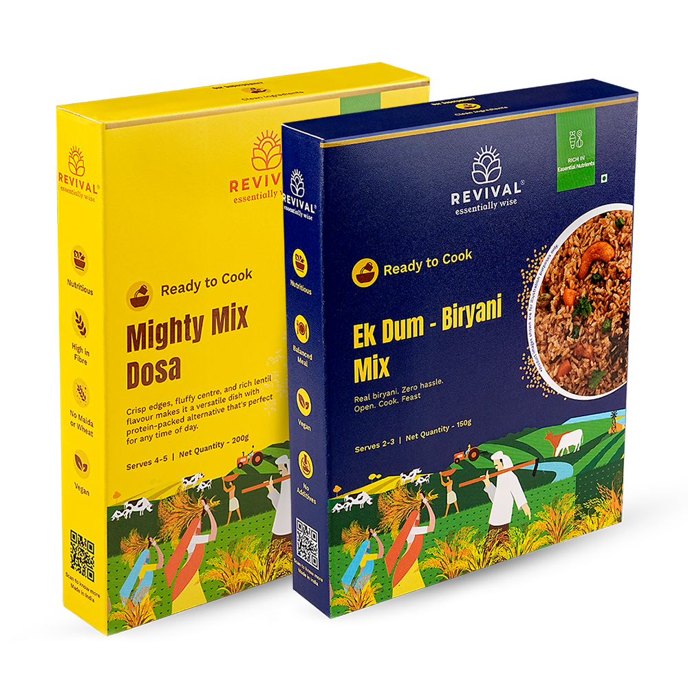 Ek Dum-Biryani Mix with Mighty Mix Dosa | Pack of 2 | Serves 3-4 | High Protein & Fiber | Boosts Energy & Digestion | Comforting & Easy to Cook.