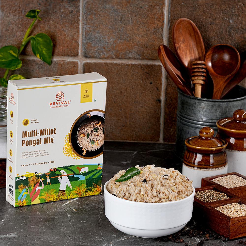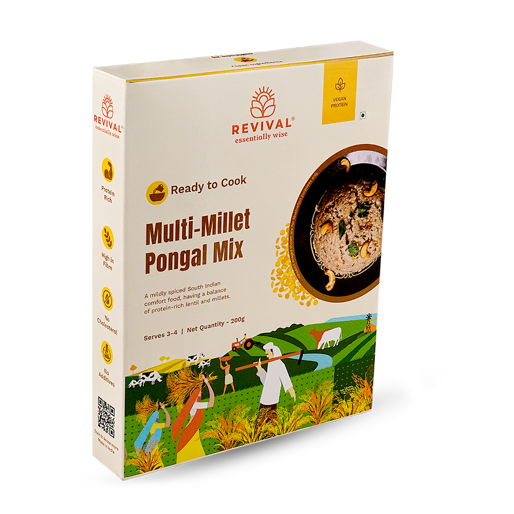 The Multi-Millet Pongal Mix from Revival Foods offers a modern, healthy twist on the classic South Indian dish. Made with a combination of various millets and traditional spices, this ready-to-cook mix delivers a hearty, comforting meal that's rich in protein and fibre. Whether you’re looking for a nutritious breakfast or a satisfying lunch, this pongal mix is easy to prepare, gluten-free, and vegan, making it the perfect choice for a balanced, flavourful meal.