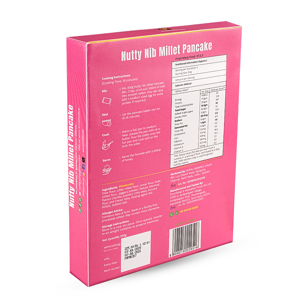 Nutty Nib Millet Pancake Mix | 200 g (Serves 4–5) | Packed with Cacao Nibs & Chia Seeds | No Maida, No Cholesterol | Guilt-Free.
